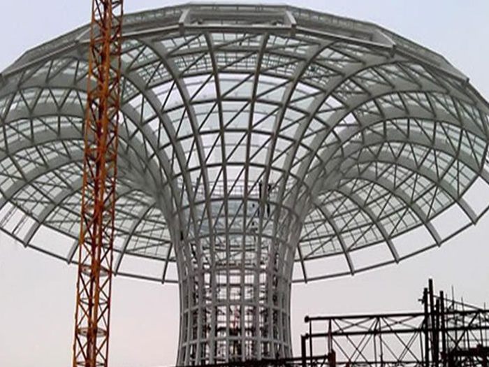 二、球形网架结构因其结构新颖,受力合理,自重轻、用钢量低等优点。如大型体育场馆球形汉中螺栓球网架、公共场馆球形网架、电厂汉中螺栓球网架、水泥工业球形网架、仓储物流球形网架、汉中干煤棚工业球形网架、汉中收费站汉中加油站球形网架、展览中心、影剧院、商场、航站楼、候车厅、工厂汉中车间、仓库、电视塔等球形螺栓球节点网架。国内球形网架结构主要分为:汉中焊接球节点网架及螺栓球节点网架两种。螺栓球节点网架其构件工厂内加工量较大,现场安装便捷,适用于现场工期紧,汉中施工条件、用电量受制约,网架形状复杂、汉中杆件定位困难的异形结构。螺栓球节点球形网架系统基本由汉中杆件、螺栓球、支撑支座等组成。按照节点形式可分为交叉汉中桁架体系、四角锥体系、三角锥体系等。支撑方式多为固定支座支撑。对于大面积、大跨度及有特殊受力或伸缩要求的网架结构可采用橡胶支座、滑移支座、球铰支座等支撑形式,以满足结构自身的受力稳定、均衡,便于内力释放等设计要求。